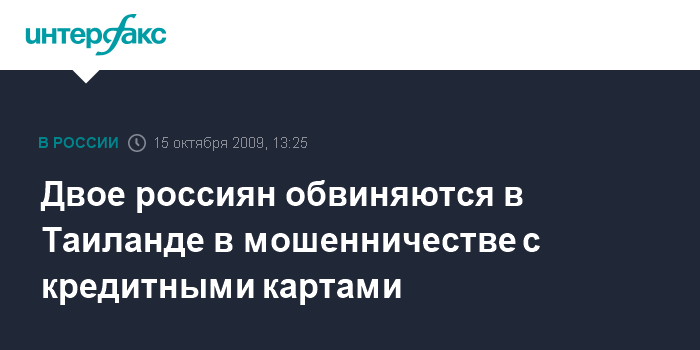 Двое россиян обвиняются в Таиланде в мошенничестве с кредитными картами