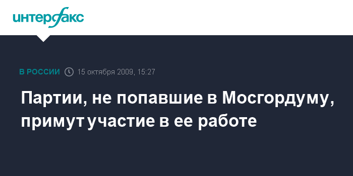 Москва. 15 октября. INTERFAX.RU - Политическим партиям, участвовавшим в выборах в Мосгордуму пятого созыва, но не преодолевшим необходимый 7-процентный барьер, предложат принять участие в работе городского парламента.