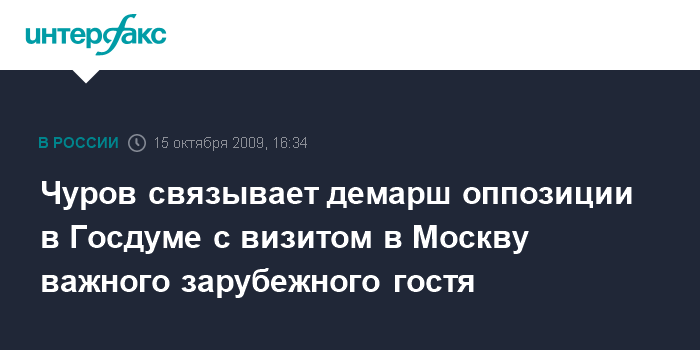 Москва. 15 октября. INTERFAX.RU - Глава ЦИК РФ Владимир Чуров вновь объяснил политическими соображениями состоявшийся накануне в Госдуме демарш оппозиционных партий, но на этот раз увязал эти действия с визитом в Россию важного иностранного гостя.