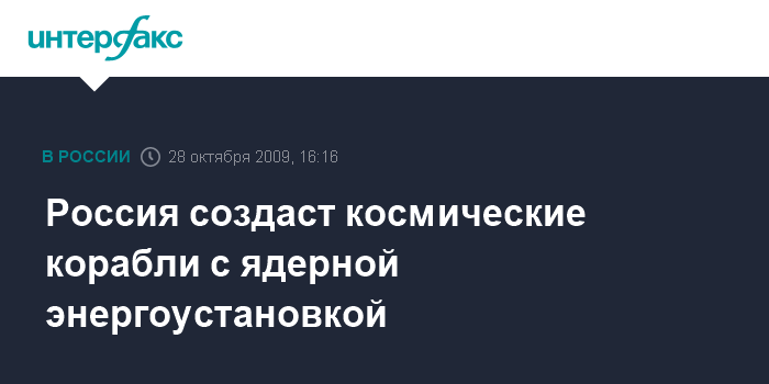 Россия создаст космические корабли с ядерной энергоустановкой
