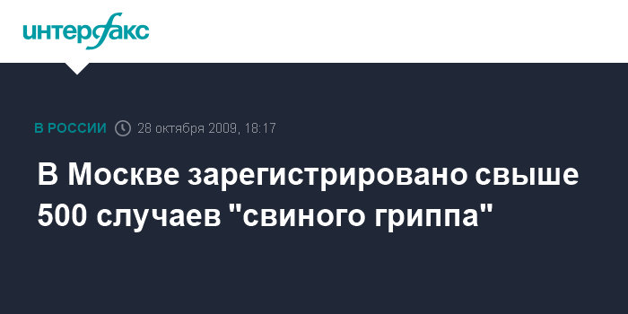 Москва. 28 октября. INTERFAX.RU - В российской столице зафиксировано 525 случаев гриппа A(H1N1), сообщили "Интерфаксу" в пресс-службе департамента здравоохранения Москвы в среду.