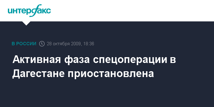 Махачкала. 28 октября. INTERFAX.RU - В Буйнакском районе с наступлением темноты приостановлена активная фаза спецоперации по поиску и нейтрализации группы боевиков, сообщили "Интерфаксу" в группе общественных связей (ГОС) УФСБ ФР по Дагестану.
