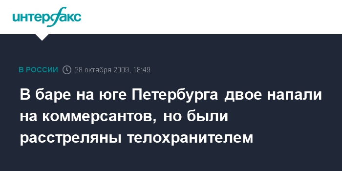 В баре на юге Петербурга двое напали на коммерсантов, но были расстреляны телохранителем
