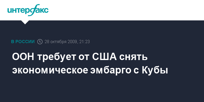 Нью-Йорк (ООН). 28 октября. INTERFAX.RU - Генеральная Ассамблея ООН в среду вновь потребовала от США снять экономическое эмбарго, введенное в отношении Кубы 47 лет назад. Такое голосование проходит ежегодно.