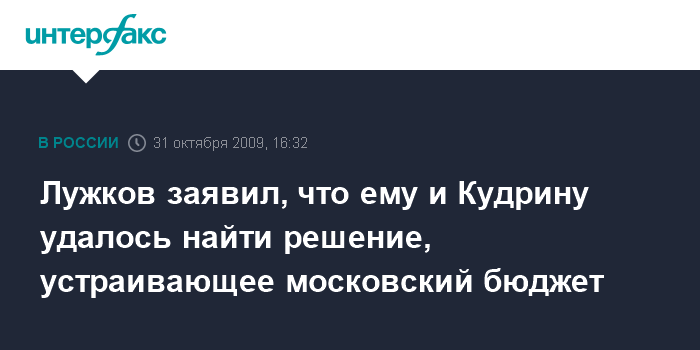Лужков заявил, что ему и Кудрину удалось найти решение, устраивающее московский бюджет