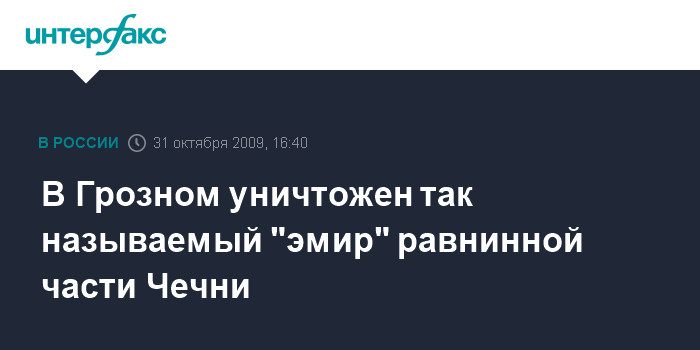 В Грозном уничтожен так называемый "эмир" равнинной части Чечни