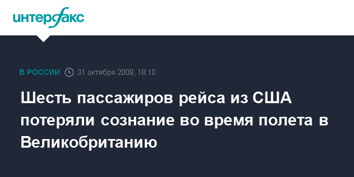 Шесть пассажиров рейса из США потеряли сознание во время полета в Великобританию