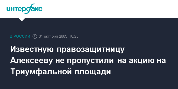 Москва. 31 октября. INTERFAX.RU - Председателя Московской Хельсинкской группы Людмилу Алексееву не пропустили на акцию в центре Москвы, на Триумфальной площади.