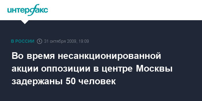 Во время несанкционированной акции оппозиции в центре Москвы задержаны 50 человек