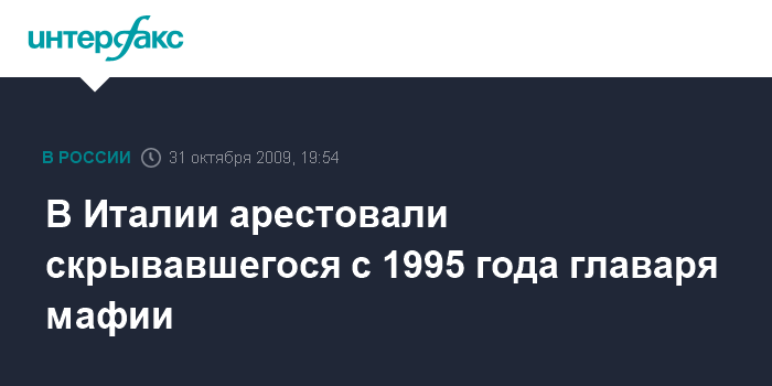 Лондон. 31 октября. ИНТЕРФАКС - В Неаполе арестован один из главарей итальянской мафии - Сальваторе Руссо, сообщает британская телерадиокорпорация Би-би-си.