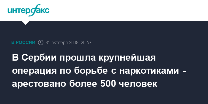 Лондон. 31 октября. ИНТЕРФАКС - В Сербии арестовано более 500 человек в ходе операции по борьбе с наркотиками, сообщает корреспондент Би-би-си в субботу.