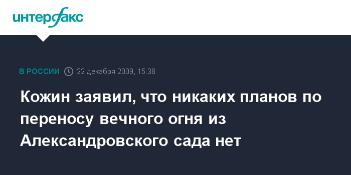 Кожин заявил, что никаких планов по переносу вечного огня из Александровского сада нет