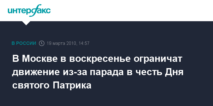В Москве в воскресенье ограничат движение из-за парада в честь Дня святого Патрика