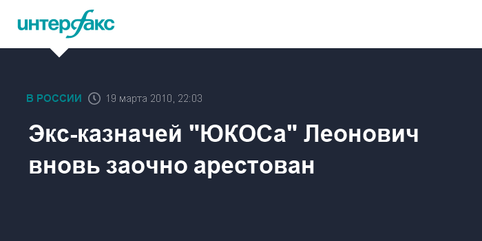 Экс-казначей "ЮКОСа" Леонович вновь заочно арестован