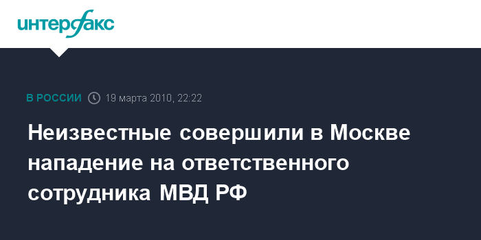 Неизвестные совершили в Москве нападение на ответственного сотрудника МВД РФ