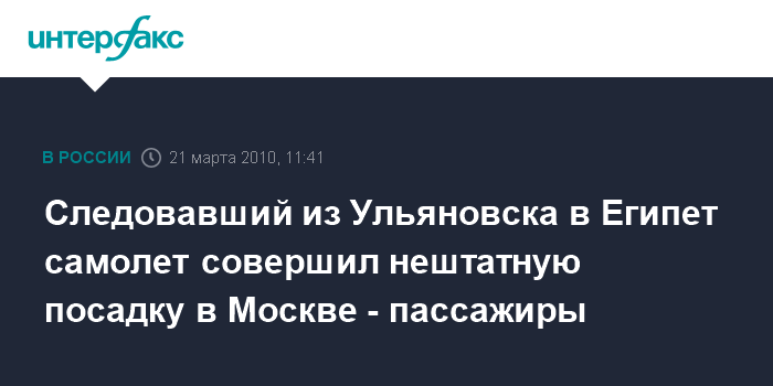 Следовавший из Ульяновска в Египет самолет совершил нештатную посадку в Москве - пассажиры