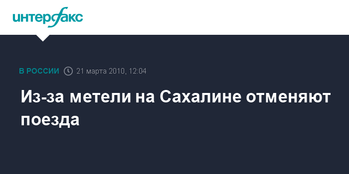 Южно-Сахалинск. 21 марта. INTERFAX.RU - Все вечерние пассажирские поезда Сахалинской железной дороги отменены из-за сильной метели, сообщил агентству "Интерфакс - Дальний Восток" пресс-секретарь СахЖД Сергей Дащинский. "Пять поездов, которые должны были отправиться в путь вечером в воскресенье, отменены из-за крайне неблагоприятных метеоусловий", - сказал он.