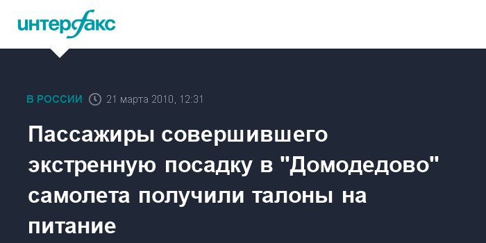 Пассажиры совершившего экстренную посадку в "Домодедово" самолета получили талоны на питание