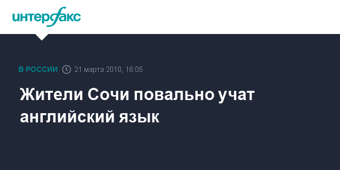 Сочи. 21 марта. INTERFAX.RU - В рамках подготовки к Олимпиаде 2014 года власти Сочи организовали курсы бесплатного изучения английского языка для сотрудников сферы обслуживания и медучреждений. "В первую очередь английский язык изучают сотрудники больниц, водители муниципального транспорта, официанты кафе и ресторанов, находящихся в зоне "олимпийского гостеприимства", - сообщила агентству "Интерфакс-Юг" заместитель главы администрации Сочи Ирина Романец. Между тем, из городских магазинов, где продается музыкальная и видеопродукция, исчезли диски по самостоятельному изучению английского языка, передает корреспондент агентства.