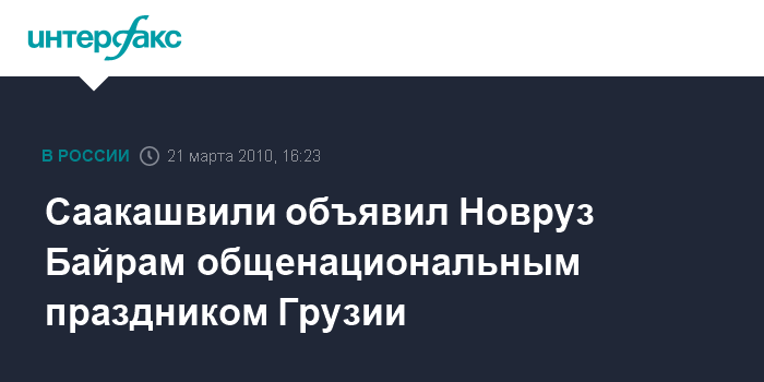 Тбилиси. 21 марта. INTERFAX.RU - Президент Грузии Михаил Саакашвли, выступая в воскресенье в Марнеули (регионе Квемо Картли, восточная Грузия), куда он прибыл поздравить местных азербайджанцев с мусульманским праздником Новруз Байрам, объявил этот праздник прихода весны общенациональным праздником Грузии. "Это решение принято от имени правительства Грузии и указывает на то, что все жители Грузии являются представителями единого государства, единого общества. И радость у нас одна, и горе должно быть единым, и этот праздник отныне будет праздноваться по всей Грузии", - заявил М.Саакашвили.