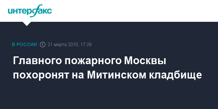 Главного пожарного Москвы похоронят на Митинском кладбище