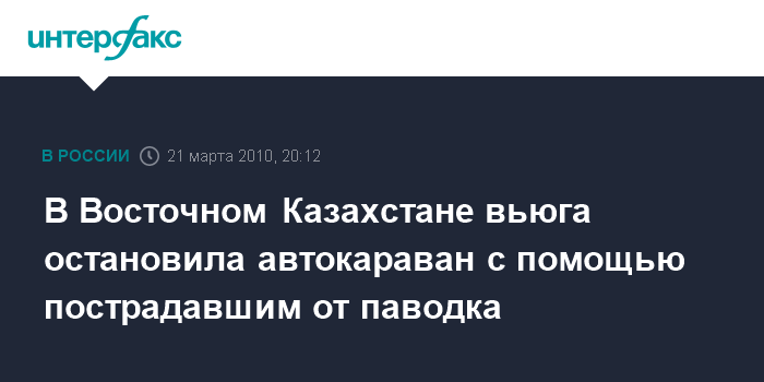 Усть-Каменогорск. 21 марта. ИНТЕРФАКС-КАЗАХСТАН - В Восточно- Казахстанской области (ВКО) Казахстана застрял в пути автокараван с гуманитарной помощью, направлявшийся в пострадавший от паводков Тарбагатайский район региона.
