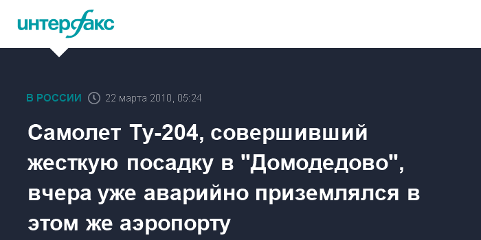 Самолет Ту-204, совершивший жесткую посадку в "Домодедово", вчера уже аварийно приземлялся в этом же аэропорту