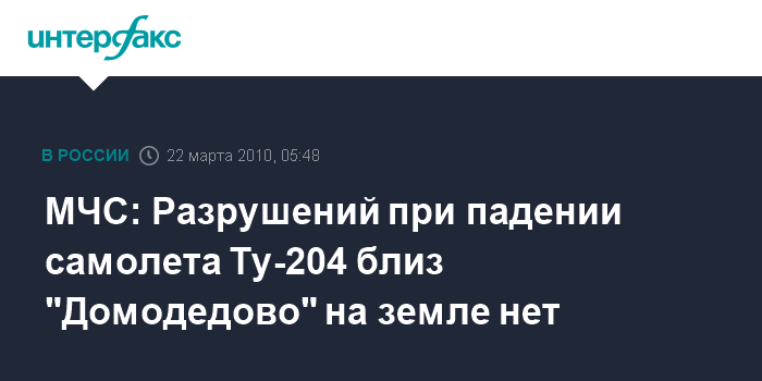 МЧС: Разрушений при падении самолета Ту-204 близ "Домодедово" на земле нет