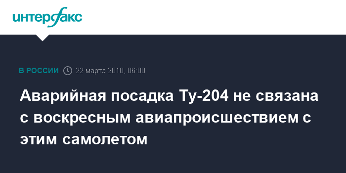 Аварийная посадка Ту-204 не связана с воскресным авиапроисшествием с этим самолетом