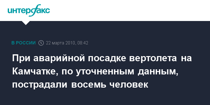 При аварийной посадке вертолета на Камчатке, по уточненным данным, пострадали восемь человек