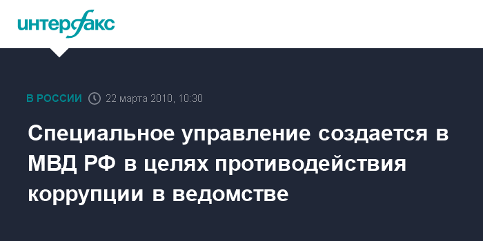 Специальное управление создается в МВД РФ в целях противодействия коррупции в ведомстве