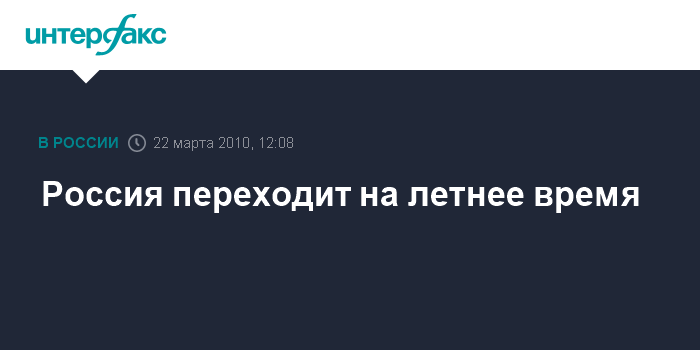 Москва. 22 марта. INTERFAX.RU - В соответствии с порядком исчисления времени, определенным Правительством Российской Федерации, на период с 28 марта 2010 г. по 31 октября 2010 г. в стране устанавливается "летнее" время. В связи с этим, как сообщает пресс-служба Федерального агентства по техническому регулированию
