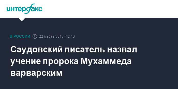 Саудовский писатель назвал учение пророка Мухаммеда варварским