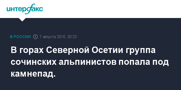 Владикавказ. 7 августа. ИНТЕРФАКС - В службы экстренного реагирования Северной Осетии поступил вызов о том, что в Дигорском ущелье в Северной Осетии под камнепад попала группа альпинистов из восьми человек.