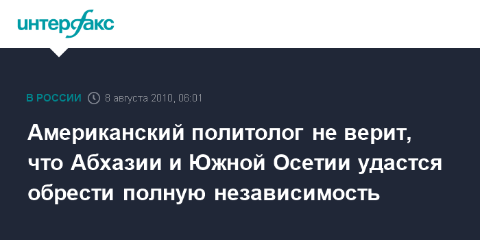Американский политолог не верит, что Абхазии и Южной Осетии удастся обрести полную независимость