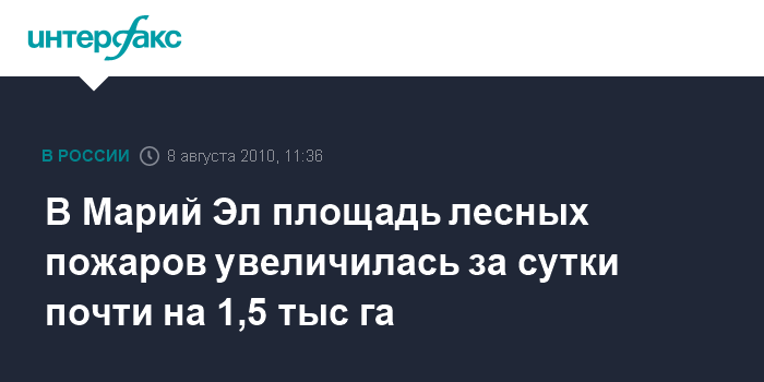 Нижний Новгород. 8 августа. INTERFAX.RU - На территории Марий Эл на утро воскресенья насчитывается два нелокализованных лесных пожара, за прошедшие сутки площадь действующих пожаров увеличилась на 1 тыс. 407 га., сообщила пресс-служба Приволжского регионального центра МЧС.
