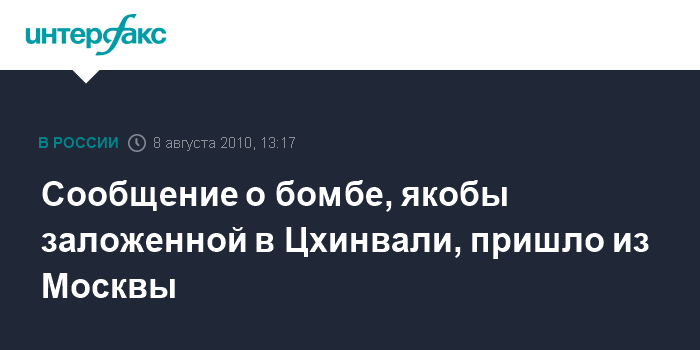 Сообщение о бомбе, якобы заложенной в Цхинвали, пришло из Москвы