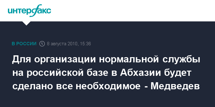 Для организации нормальной службы на российской базе в Абхазии будет сделано все необходимое - Медведев