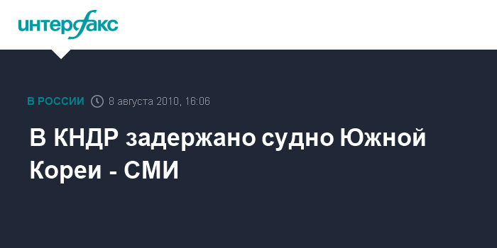 Лондон. 8 августа. INTERFAX.RU - Береговая охрана Южной Кореи заявила, что в КНДР захвачено южнокорейское рыболовецкое судно, сообщает британская телерадиовещательная корпорация Би-би-си. Сейчас северокорейские власти допрашивают экипаж судна. По предварительным данным, экипаж состоит из четырех южнокорейцев и трех китайцев.