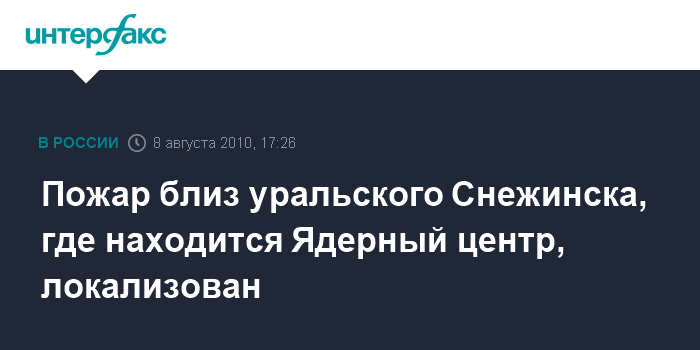 Пожар близ уральского Снежинска, где находится Ядерный центр, локализован