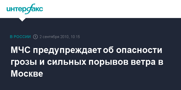 Москва. 2 сентября. ИНТЕРФАКС - Сильный порывистый ветер и гроза ожидаются в столичном регионе в четверг, сообщили "Интерфаксу" в пресс-службе ГУ МЧС по Москве.
