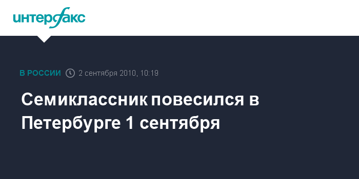 Санкт-Петербург. 2 сентября. INTERFAX.RU - В Петербурге в День знаний повесился семиклассник, сообщил "Интерфаксу" источник в ГУВД города в четверг.