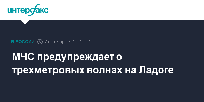 Санкт-Петербург. 2 сентября. INTERFAX.RU- На Ладожском озере в среду ожидается шторм с трехметровыми волнами, сообщила пресс-служба МЧС по Ленинградской области.