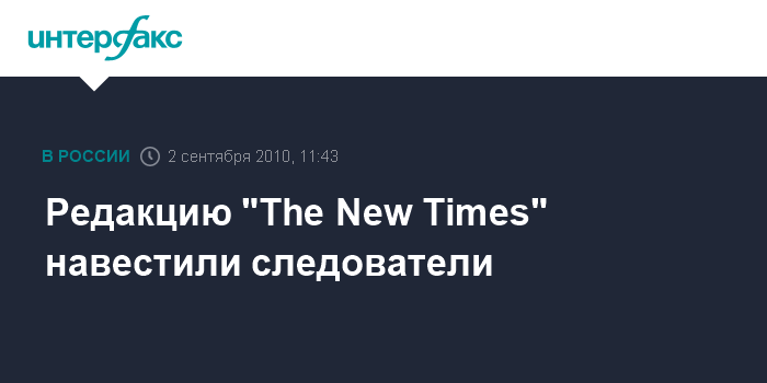 Москва. 2 сентября. INTERFAX.RU - Группа следователей в четверг прибыла в редакцию журнала"The New Times", но цель их визита пока непонятна.
