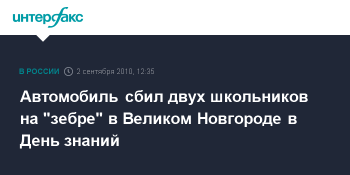 Великий Новгород. 2 сентября. INTERFAX.RU - В Великом Новгороде 1 сентября на пешеходном переходе автомобиль сбил двух школьников, сообщает пресс-служба ГИБДД по Новгородской области.