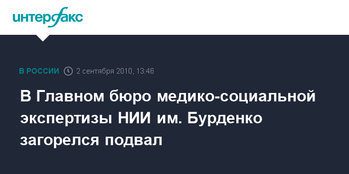 Москва. 2 сентября. INTERFAX.RU - В Главном бюро медико-социальной экспертизы НИИ имени Бурденко на 4-й Тверской-Ямской улице возник пожар, сообщил "Интерфаксу" источник в правоохранительных органах.