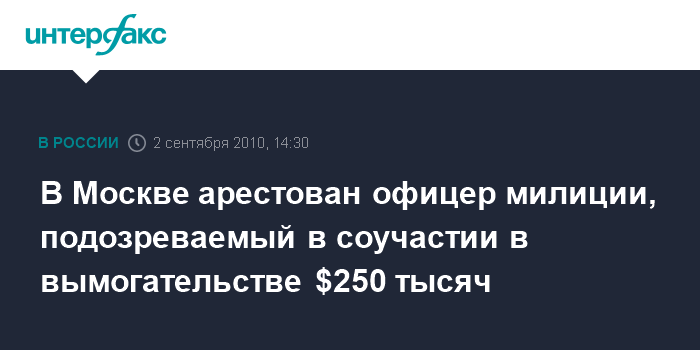 В Москве арестован офицер милиции, подозреваемый в соучастии в вымогательстве $250 тысяч