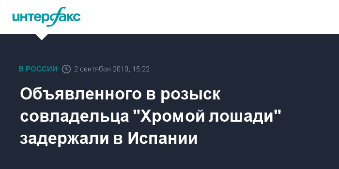 Объявленного в розыск совладельца "Хромой лошади" задержали в Испании