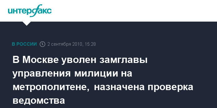 Москва. 2 сентября. INTERFAX.RU - Глава столичной милиции уволил заместителя начальника управления милиции на метрополитене и поручил провести проверку в подразделениях этого управления, сообщил "Интерфаксу" начальник управления информации и общественных связей ГУВД Москвы Виктор Бирюков.