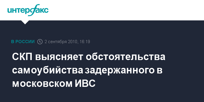 2 сентября. INTERFAX.RU - Столичные органы СКП проводят проверку по факту суицида задержанного в изоляторе временного содержания (ИВС) на юго-западе Москвы, сообщил официальный представитель следственного управления СКП по Москве Сергей Марченко.